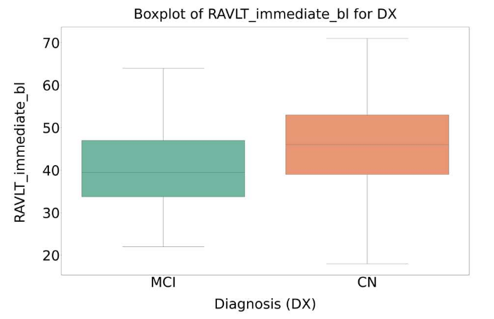 Statistical analysis based on ANOVA was applied to identify variables showing significant differences between CN and MCI groups. An example is shown in Figure 3.